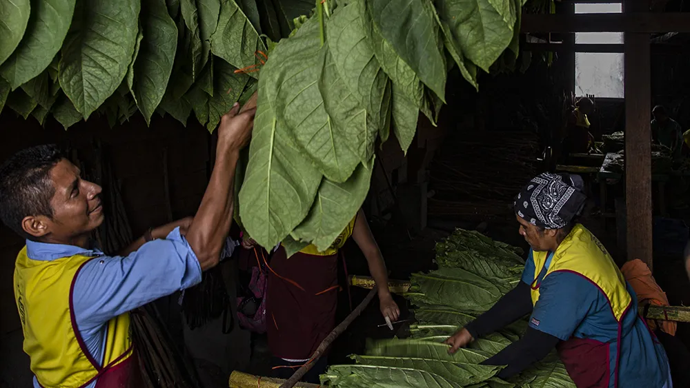 Lá được hái cẩn thận trên từng cây để không bị rách. Jorge Padrón nói: “Toàn bộ lá có giá trị hơn”. Những chiếc lá đẹp nhất, có tính thẩm mỹ cao nhất sẽ được dành riêng để dùng làm giấy gói xì gà.