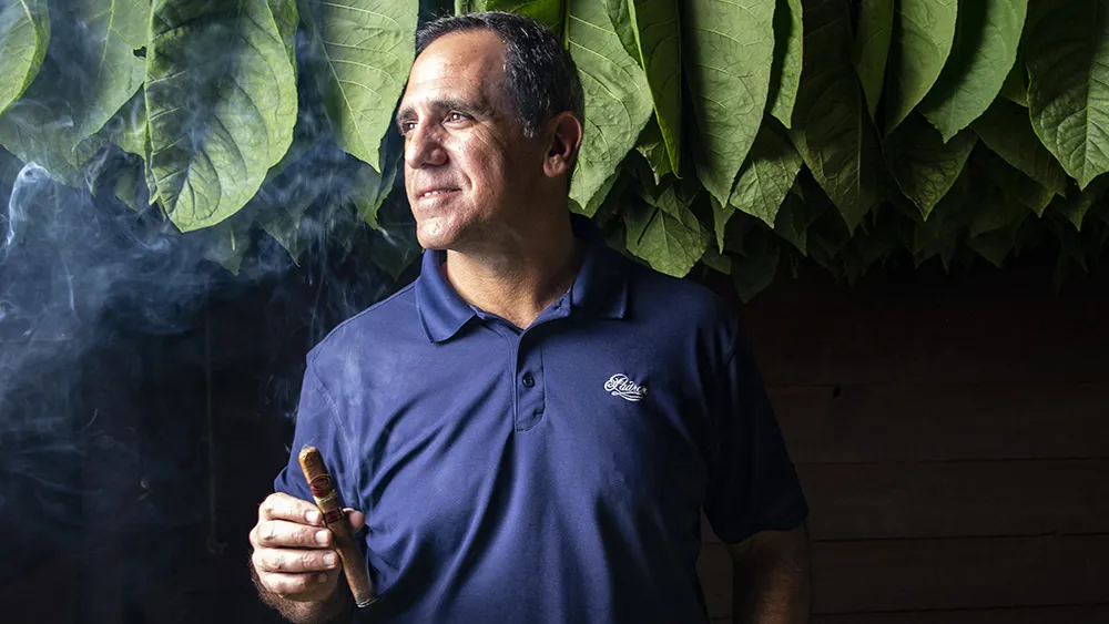 Chủ tịch của Padrón, Jorge Padrón, hút thuốc Family Reserve (pha trộn với thuốc lá đã ủ 10 năm) bên trong kho sấy ở Nicaragua. Mặc dù anh ấy học cách cuộn điếu xì gà đầu tiên của mình vào khoảng 15 tuổi, nhưng anh ấy nói: “Tôi hút chúng giỏi hơn nhiều so với cuộn chúng”.