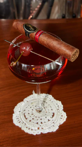 Sự sang trọng vượt thời gian của cocktail Manhattan hài hòa với hương vị đa sắc thái của Davidoff Yamasá Robusto. Sự kết hợp của rượu whisky, rượu vermouth ngọt và vị đắng thơm tạo nên một hương vị đậm đà và cân bằng. Kết hợp hoàn hảo với hương đất và vị cay có trong xì gà. Hương caramel trong rượu whisky cộng hưởng với tinh chất của điếu xì gà, trong khi một chút vị đắng tạo thêm các lớp phức tạp. Sự kết hợp này tạo ra sự tương tác thú vị và mang lại trải nghiệm thú vị cho những người đam mê xì gà và cocktail.